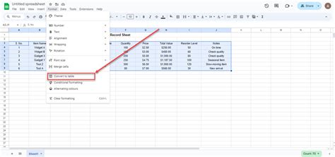 how to convert data into a table in google sheets