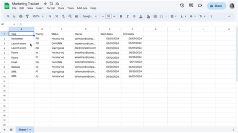 how to do tables in sheets